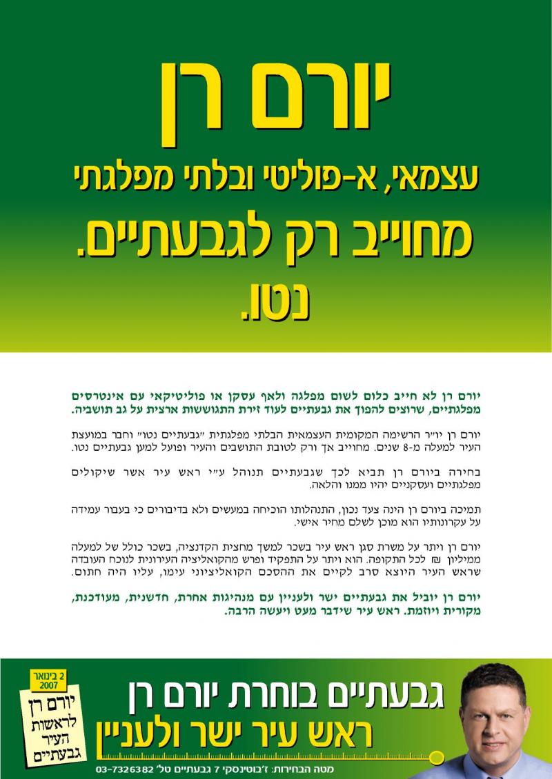 יורם רן - לראשות עיריית גבעתיים